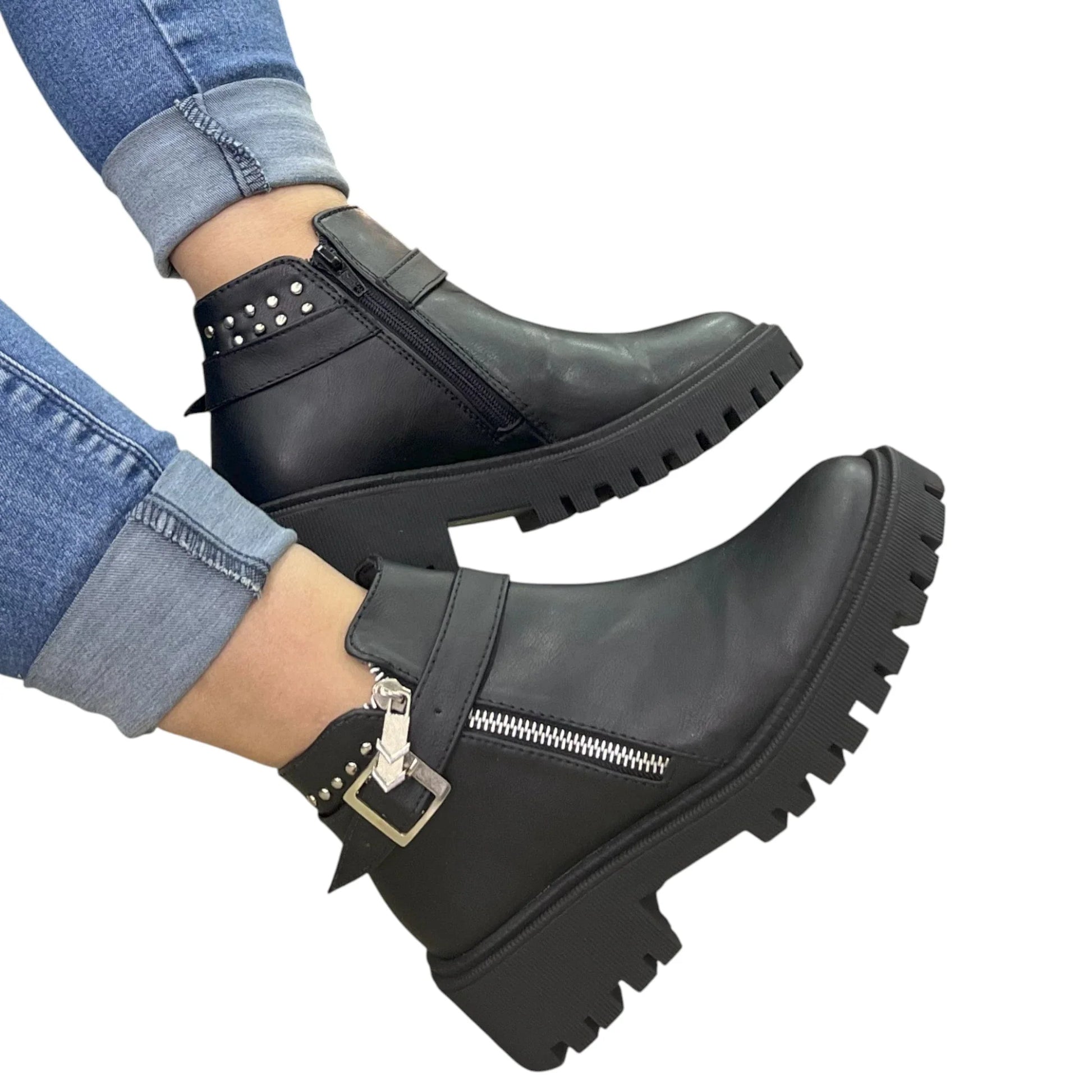 BOTIN PLANO 2705 NUEVA (CORREA Y TACHES) NEGRO CON HEBILLA
