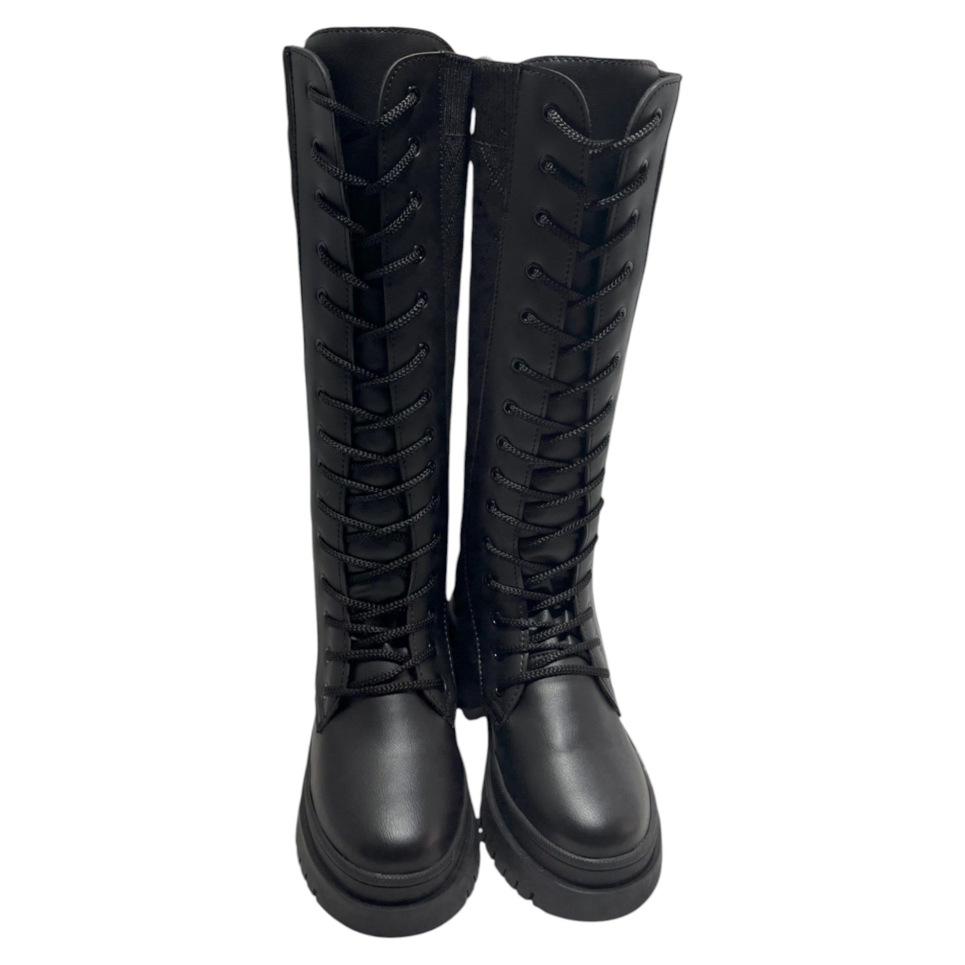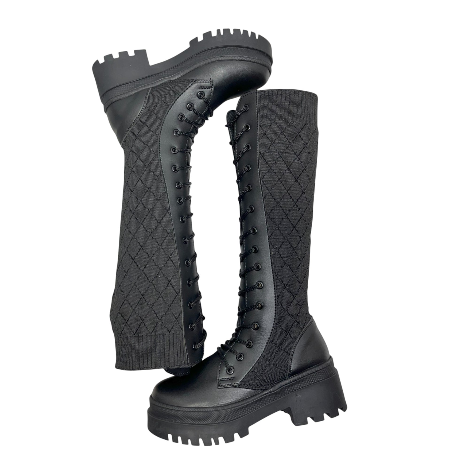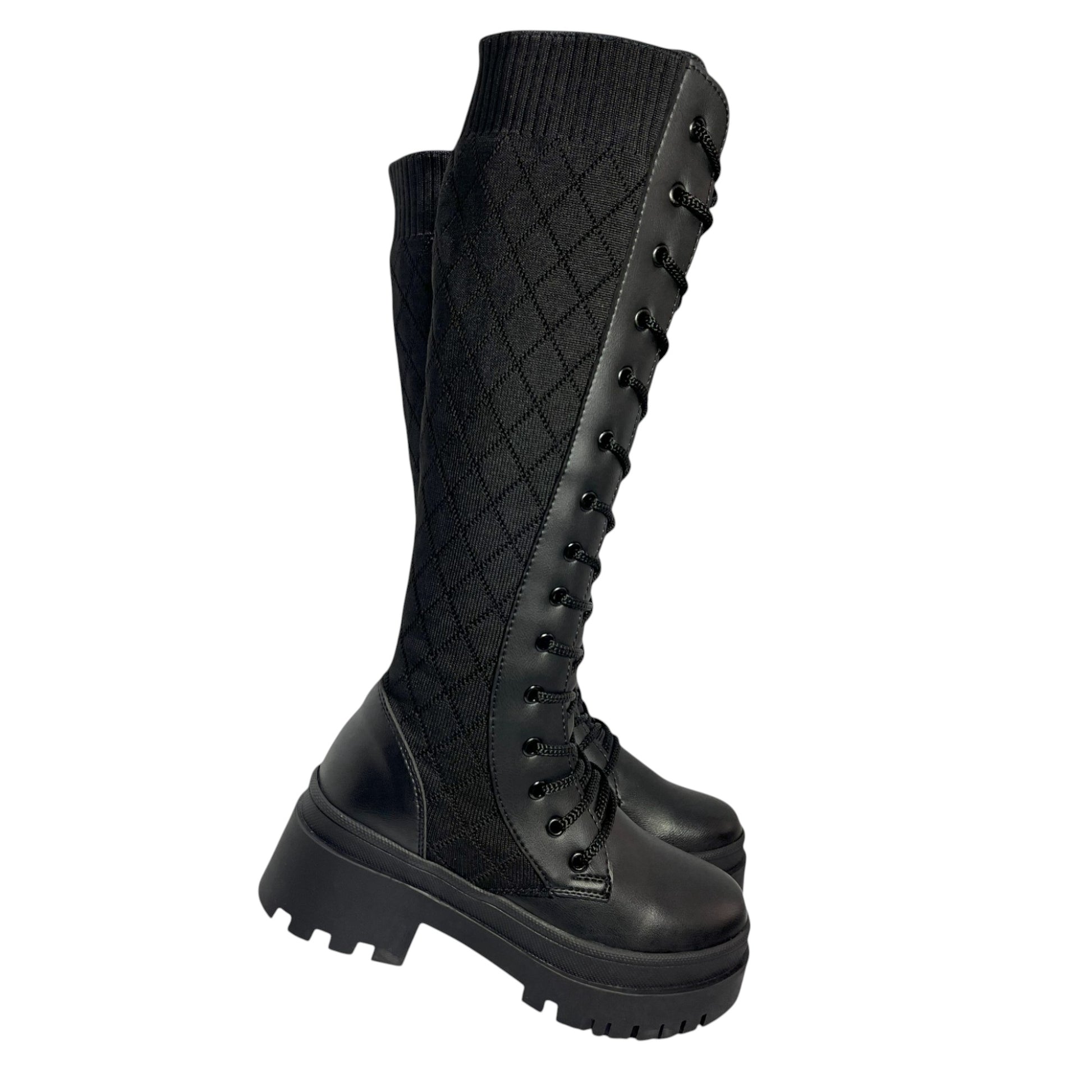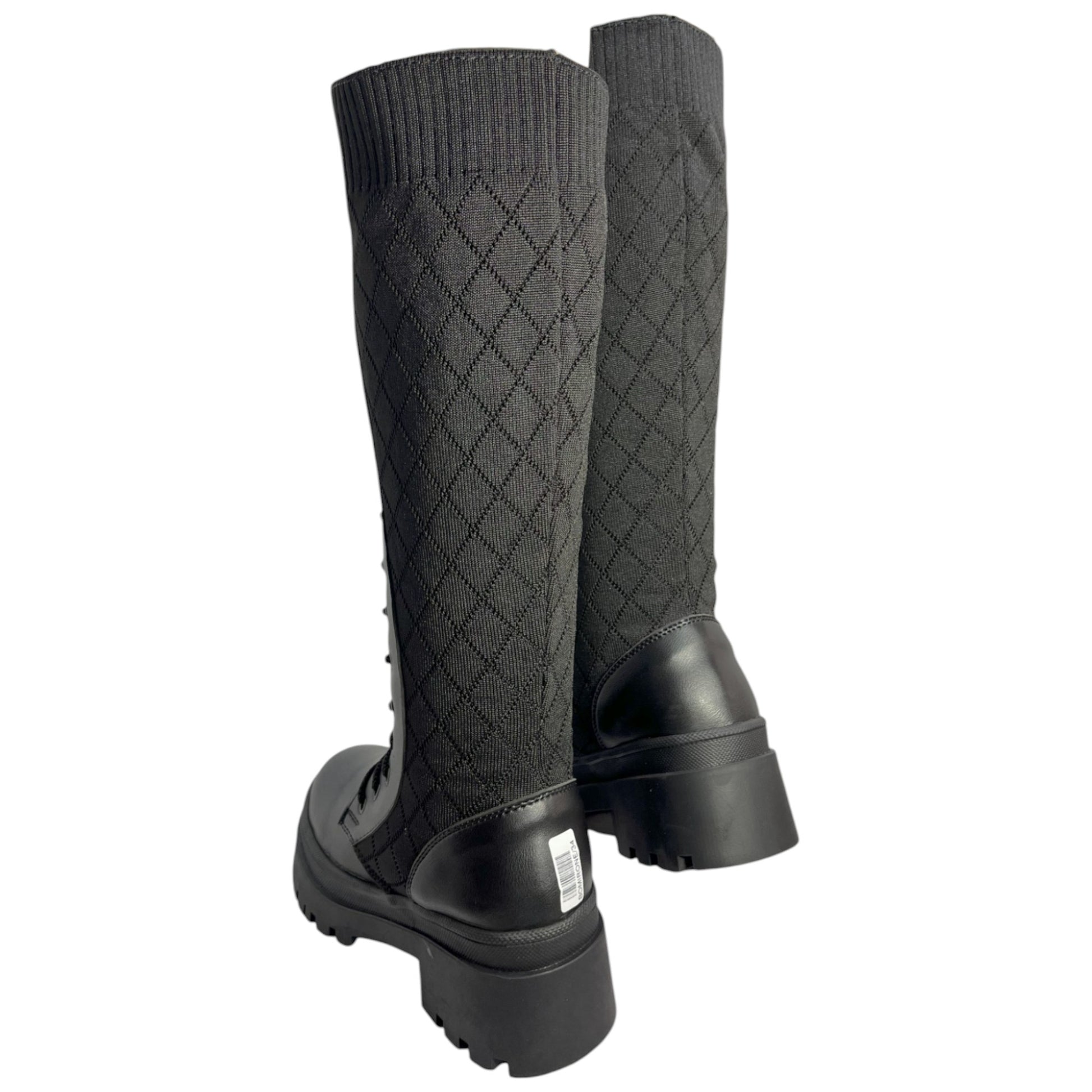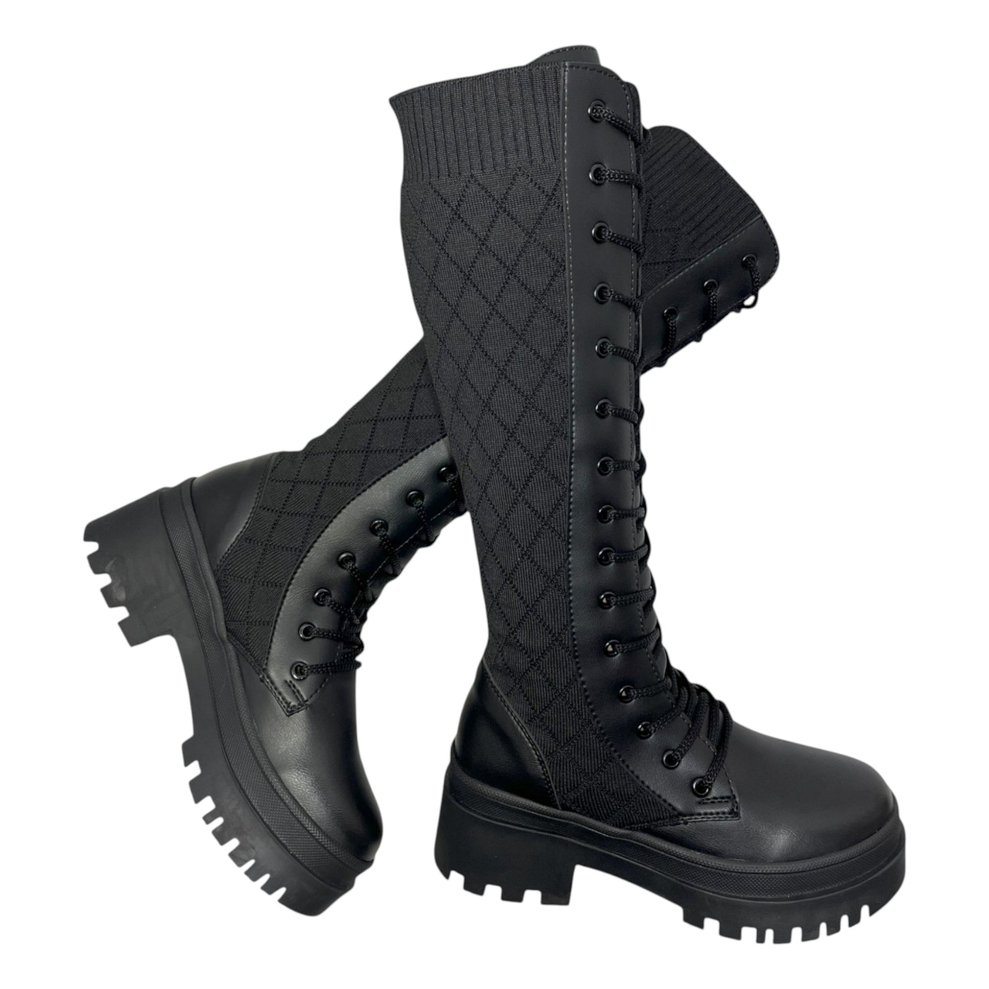 Bota media caña Negro tejido y acabado tipo cuero Militar