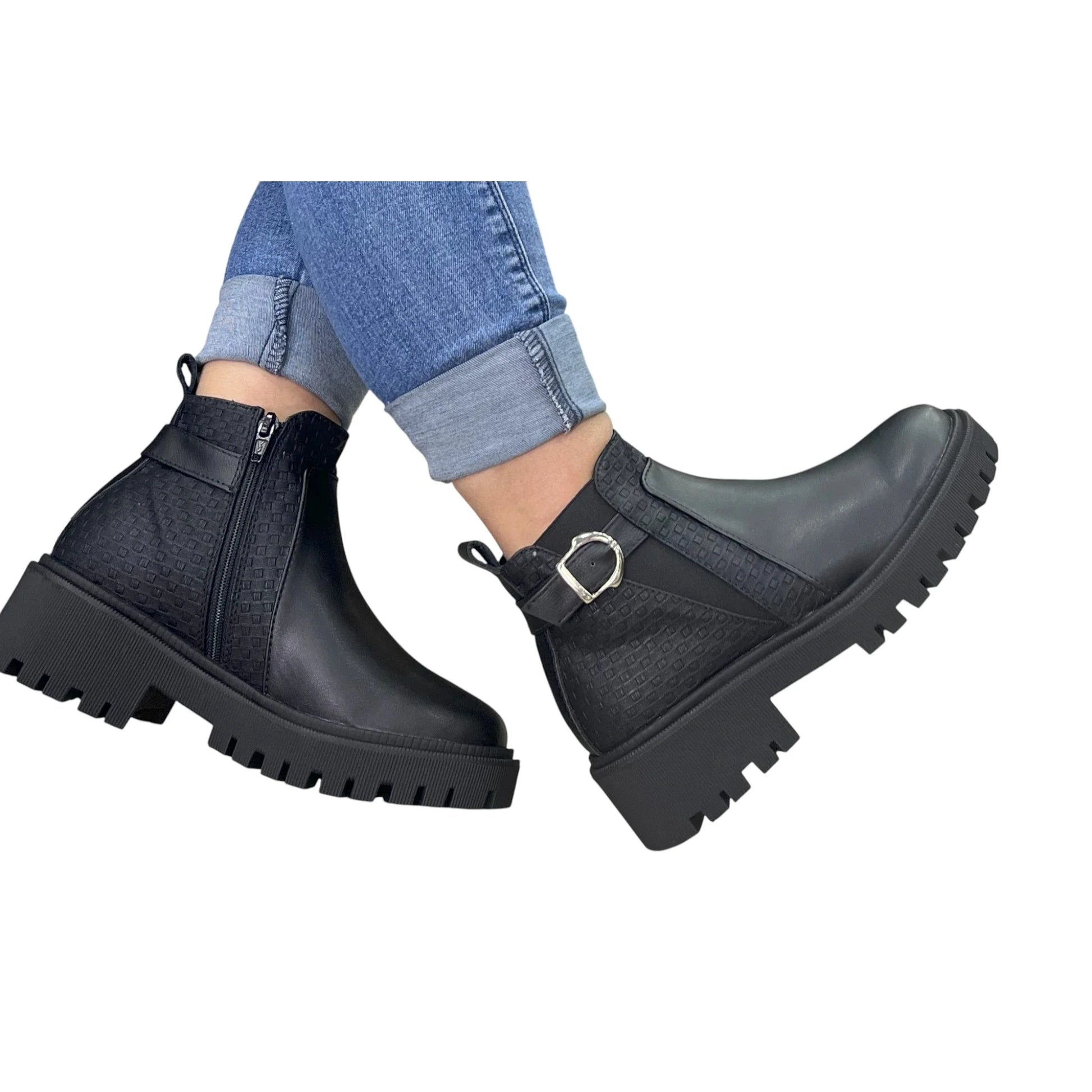 BOTÍN RENATA NEGRO CON HEBILLA Y CREMALLERA