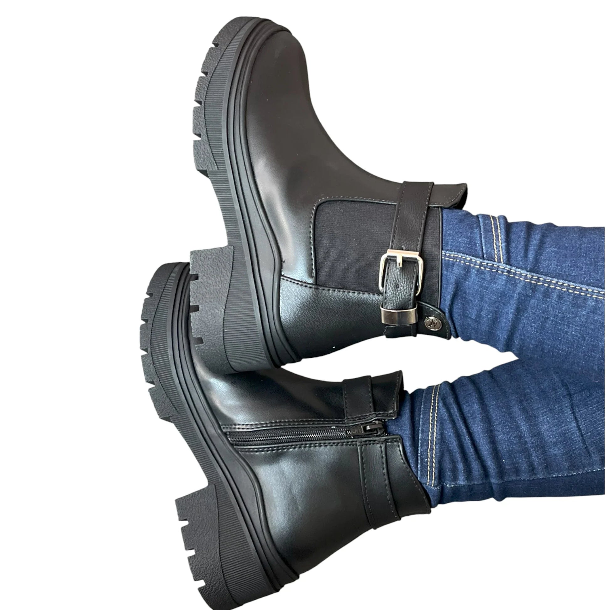 BOTIN PLANO LAURA CORREA NEGRO CON HEBILLA