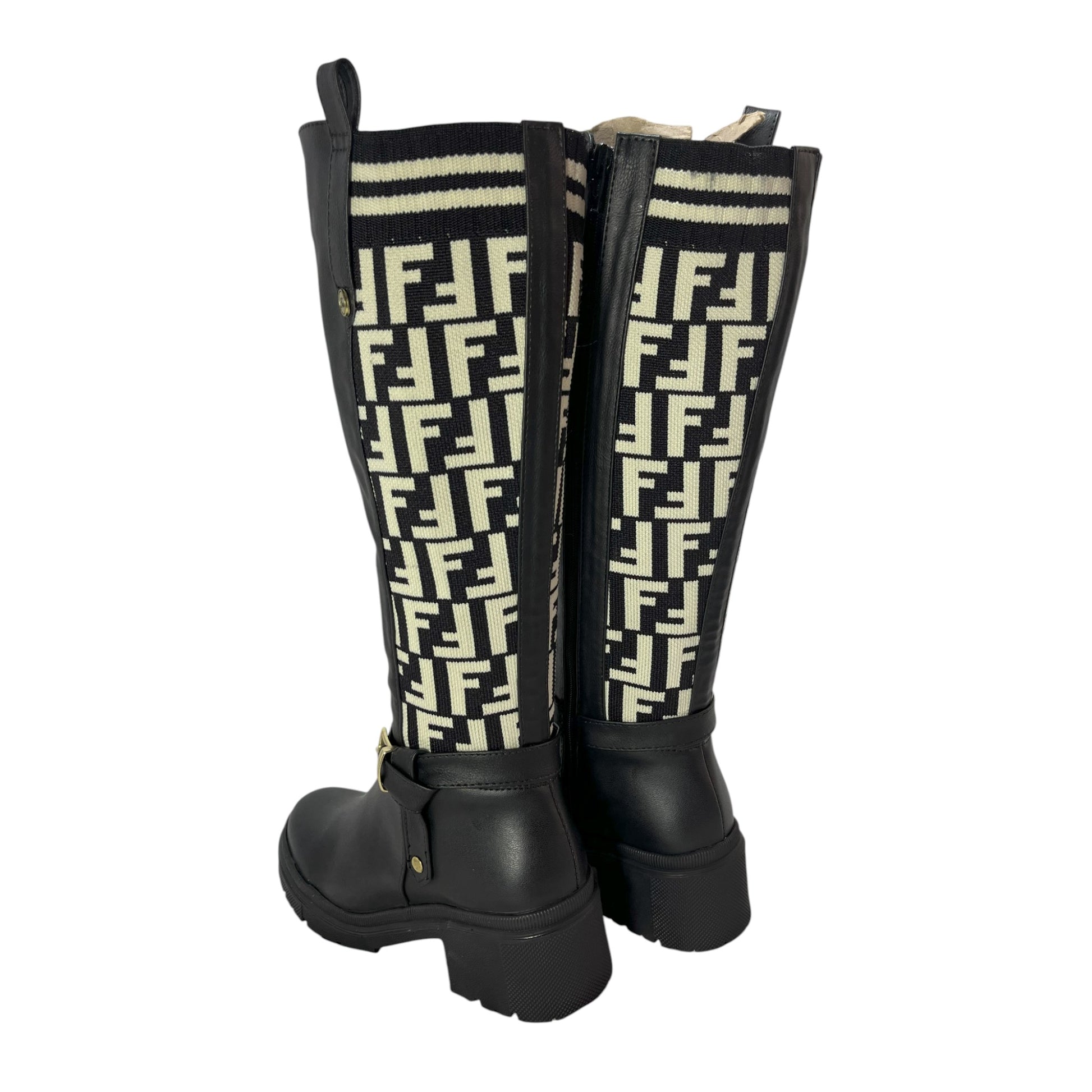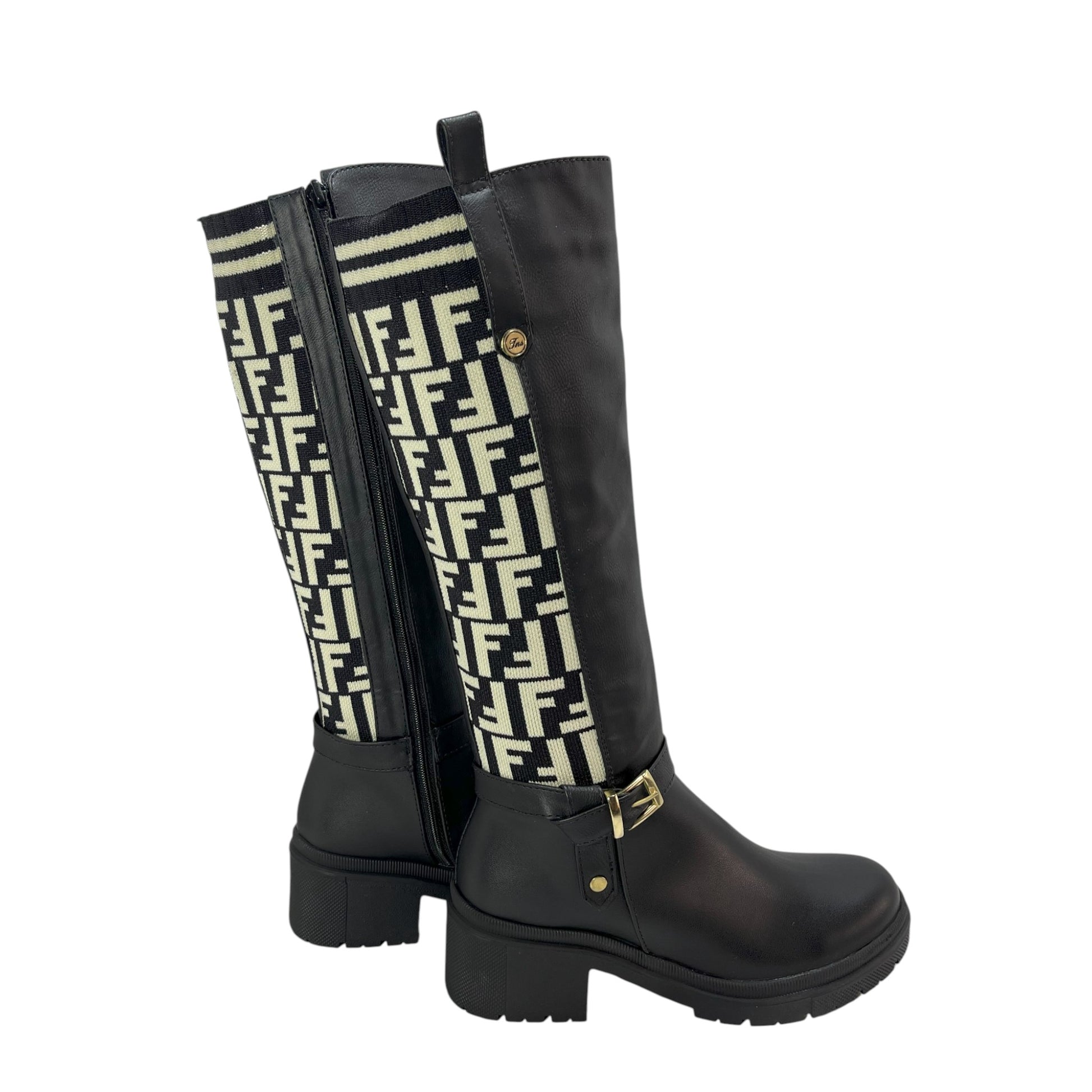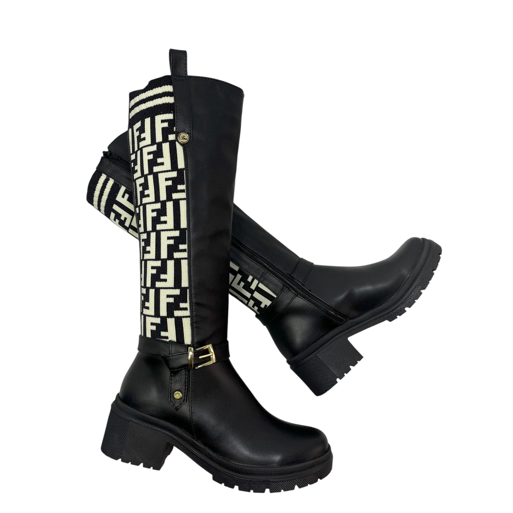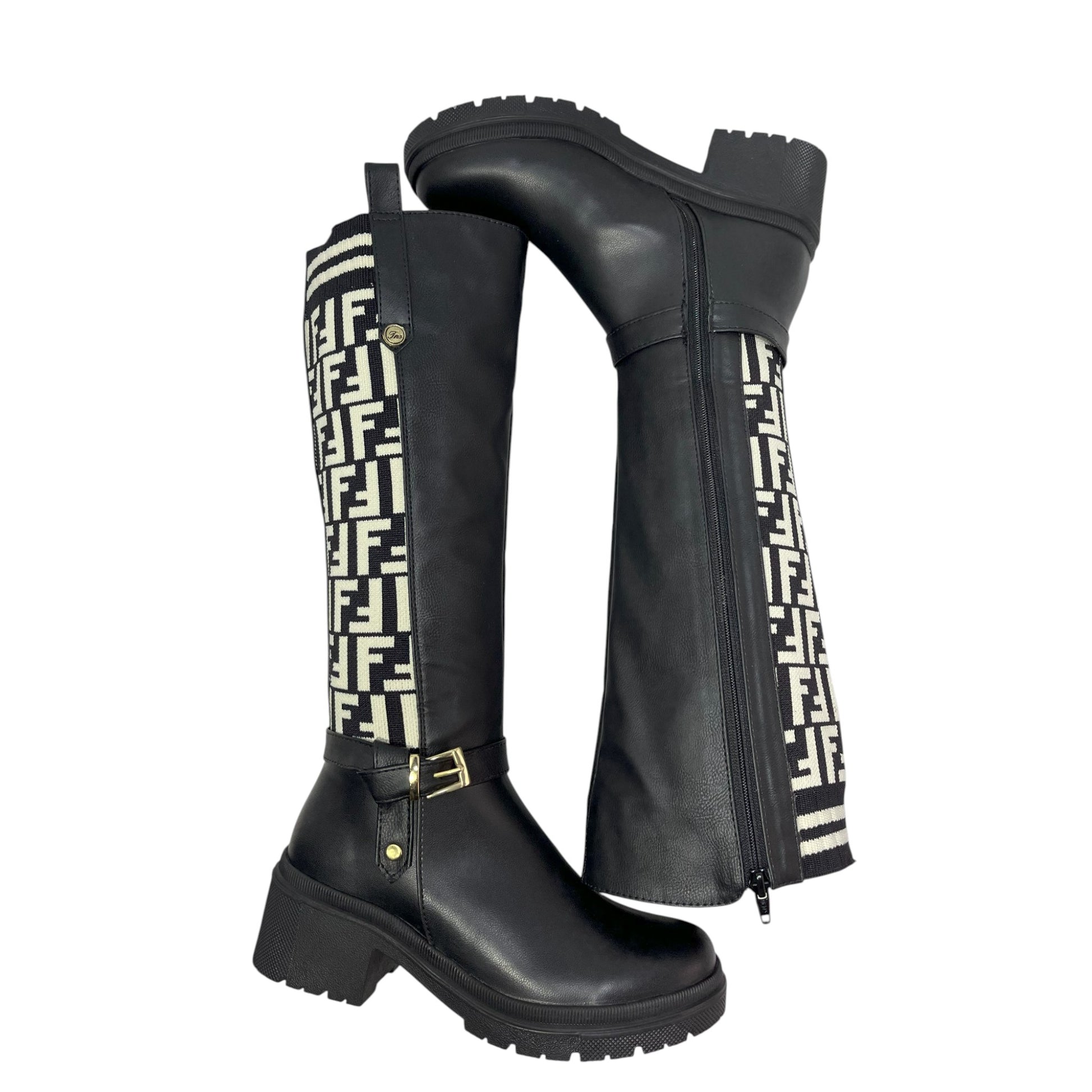 - Apta para pierna gruesa, material atrás tejido beige con negro.